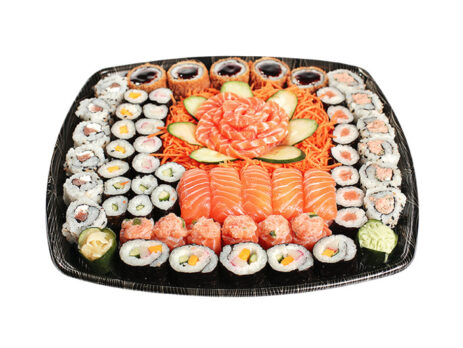 5 unid. de Niguiri Salmão;  5 unid. de Maki Sushi Califórnia; 5 unid. de Hot Roll; 5 unid. de Hossomaki de Kani; 5 unid. de Hossomaki de Pepino; 5 unid. de Hossomaki de Manga; 6 unid. de Jyo; 6 unid. de Uramaki de Salmão com Cream Cheese; 6 unid. de Uramaki de Patê de Salmão; 7 unid. de Hossomaki de Salmão; 10 unid. de Sashimi de Salmão; (serve 4 pessoas) R$  219,90 cada combinado | R$57,97 preço médio por pessoa R$  197,90 cada combinado / R$ 49,47 preço médio por pessoa para [...]