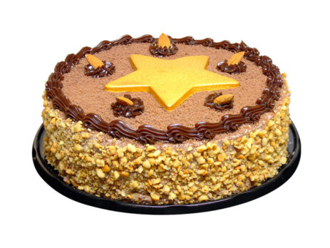 Pão de ló de chocolate recheado com um delicioso mousse de chocolate com amêndoas, envolto com xerém de amendoim, decorado com farelo de pão de ló de chocolate, amêndoas inteiras e uma linda estrela dourada. Unid. média – 1,2Kg | (serve 12 a 14 pessoas) R$ 85,99/ unidade R$ 77,99/unidade para clientes clube de vantagens Hirota ______________________________________ Não deixe para a última hora, antecipe seu pedido em uma de nossas lojas!