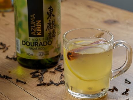 INGREDIENTES 30ml Limão Espremido 2 Colheres de Açúcar Mascavo 70ml Sake Azuma Dourado 90ml Chá de Jasmim ou Melissa com Flor de Laranjeira 2 dentes de Cravo da Índia   MODO DE PREPARO Coloque o limão, o cravo e o açúcar em um copo/xicara. Aqueça delicadamente o Sake em uma panela. Despeje o Sake no copo e complete com chá de jasmim. Se desejar, adicione 3-4 fatias finas de limão ao copo. Mixologista: Ricardo Augusto Leve, aromático e cítrico, com notas herbais e sabor marcante.