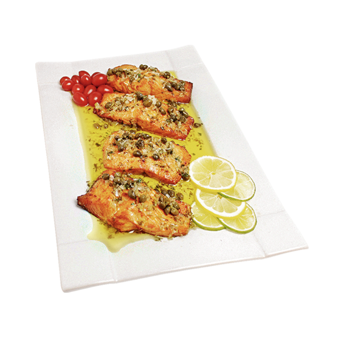 Tranche de salmão com tempero do Chef e delicioso molho de alcaparras.