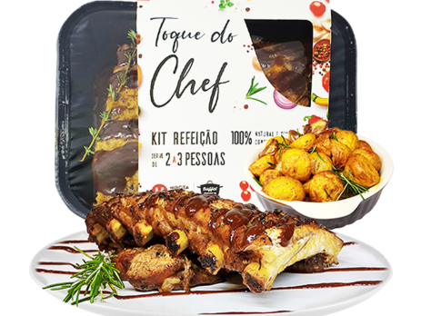 Costela suína suculenta com molho barbecue, acompanhada de batatas assadas com arroz e alecrim. Unidade média – 1kg Para clientes Clube de Vantagens R$ 59,90/cada