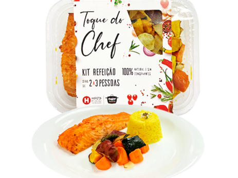 Duas postas de salmão assadas, acompanhadas de legumes rústicos (abóbora kabochá, batata doce, cenoura e cebolas) e arroz de abacaxi (arroz, açafrão e abacaxi). Unidade média – 1kg Para clientes Clube de Vantagens R$ 79,90/cada